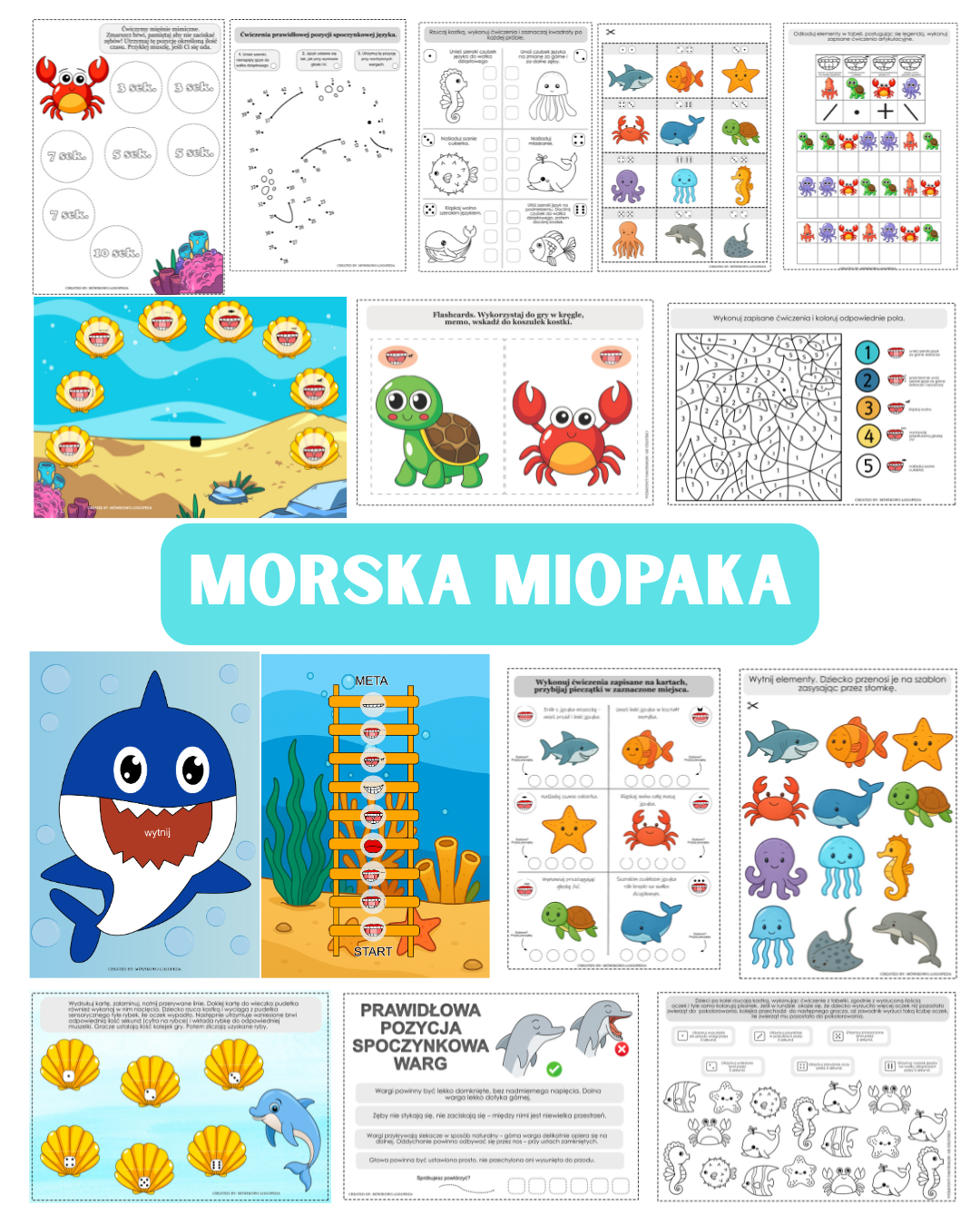 Morska Miopaka to zestaw kreatywnych kart pracy i zabaw usprawniających funkcje prymarne w grupie dzieci przedszkolnych.