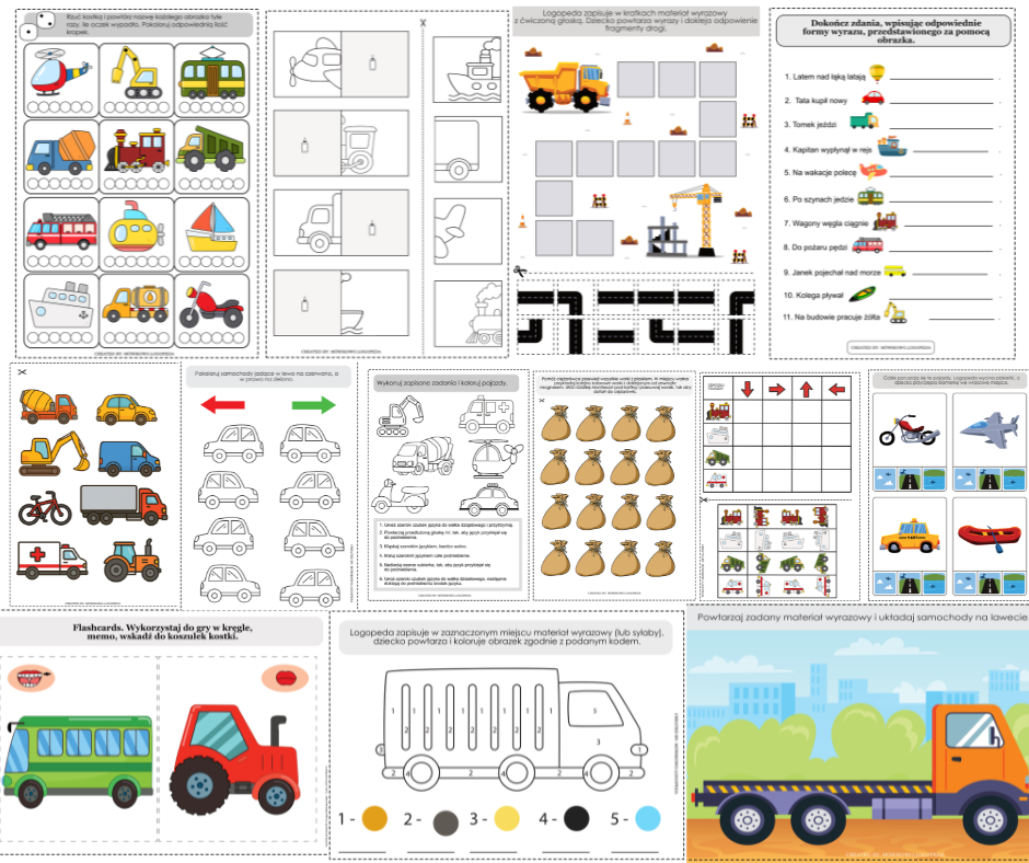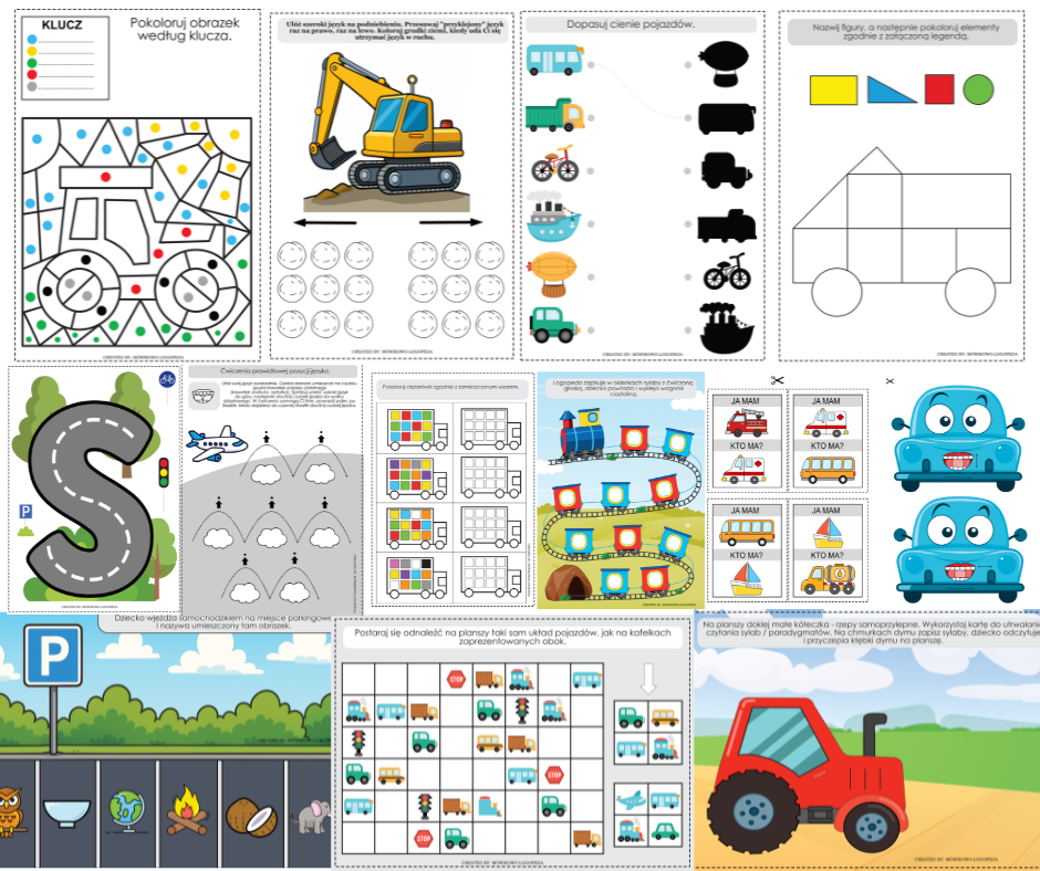 ćwiczenia artykulacyjne i oddechowe z motywem pojazdów