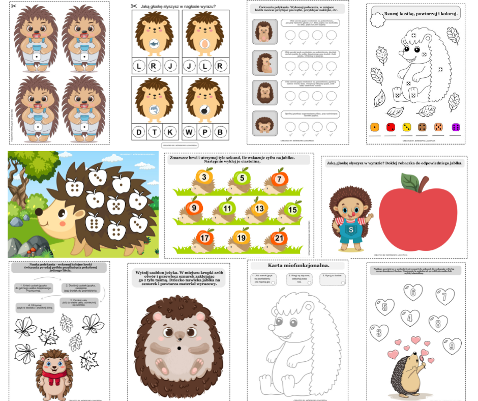To komplet kreatywnych pomocy logopedycznych do zajęć z okazji Dnia Jeża. Zestaw zajęciowy Jeż zawiera ponad 50 stron materiałów, które swoją atrakcyjnością sprawią, że dzieci będą chętnie uczestniczyły w Twoich zajęciach.