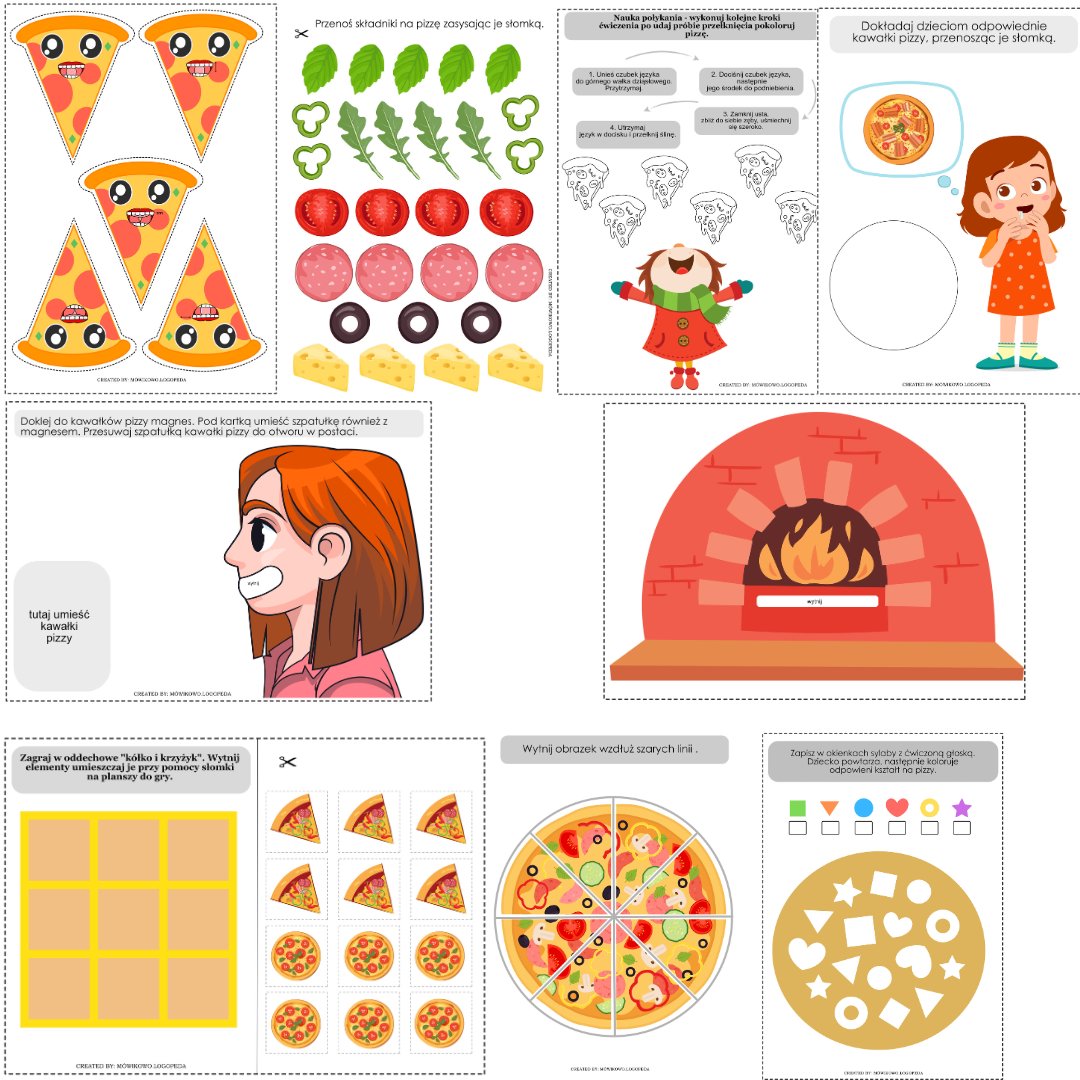 To komplet kreatywnych pomocy logopedycznych do zajęć z okazji Dnia Pizzy. Zestaw zajęciowy zawiera ponad 40 stron materiałów, które swoją atrakcyjnością sprawią, że dzieci będą chętnie uczestniczyły w Twoich zajęciach.